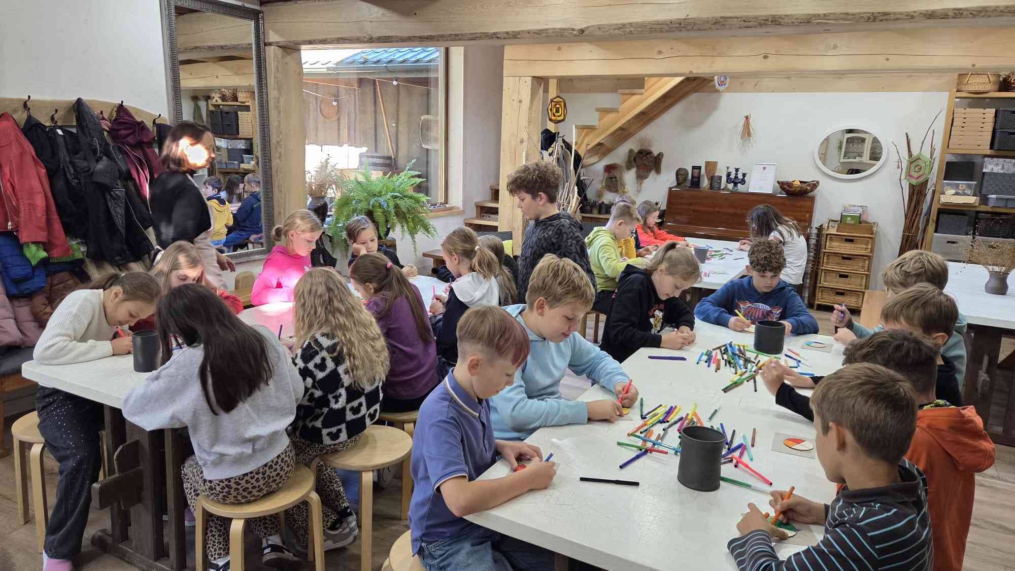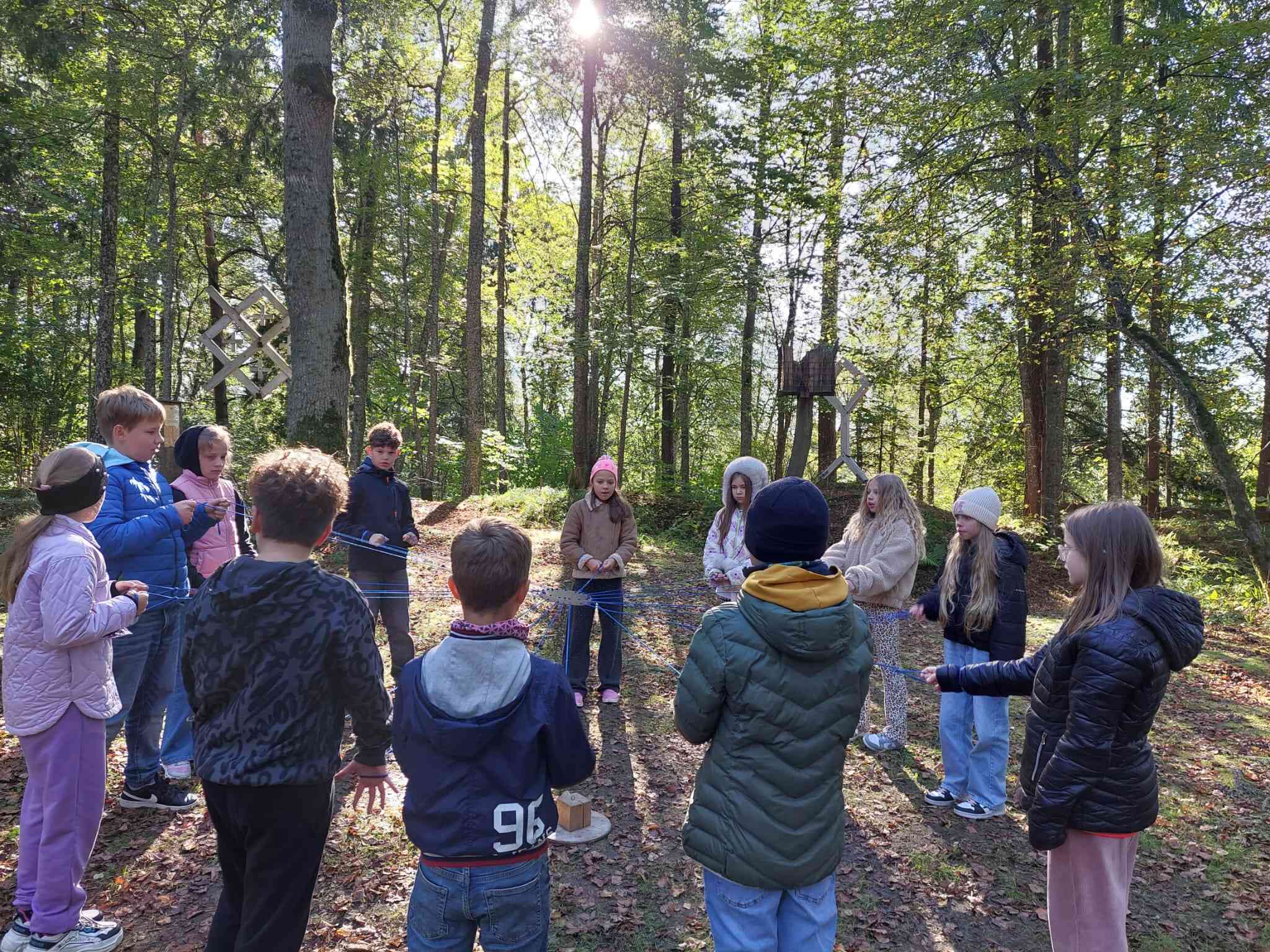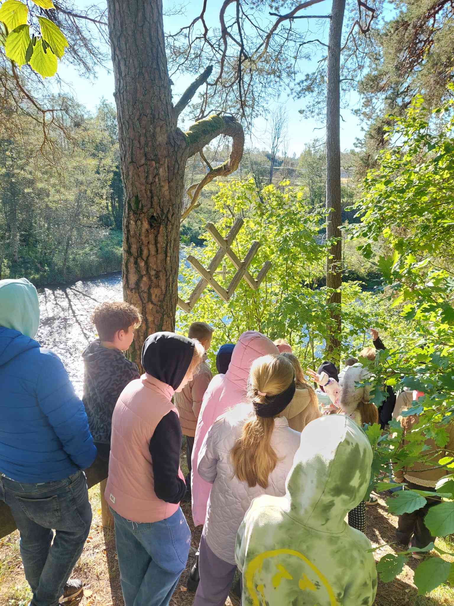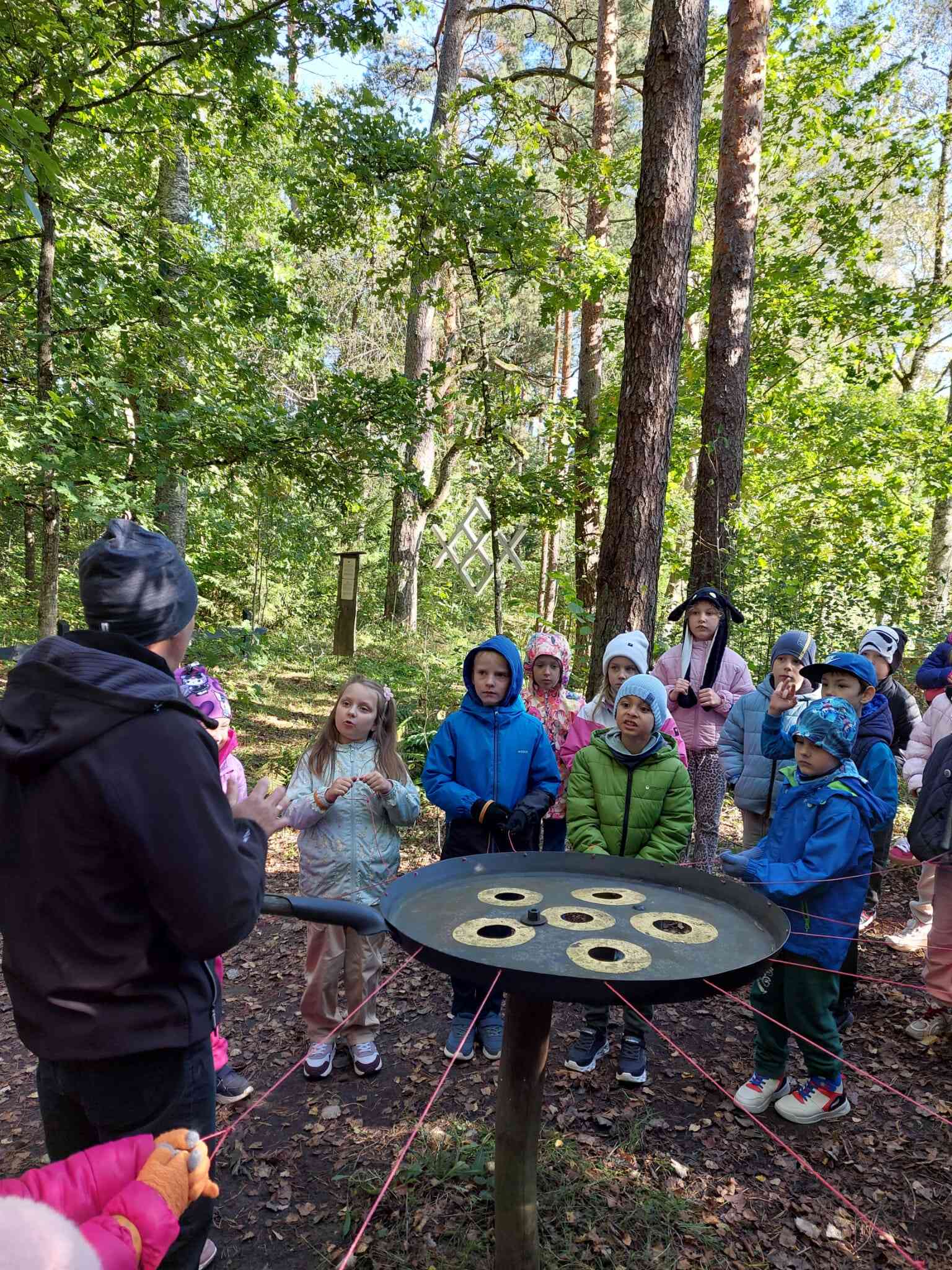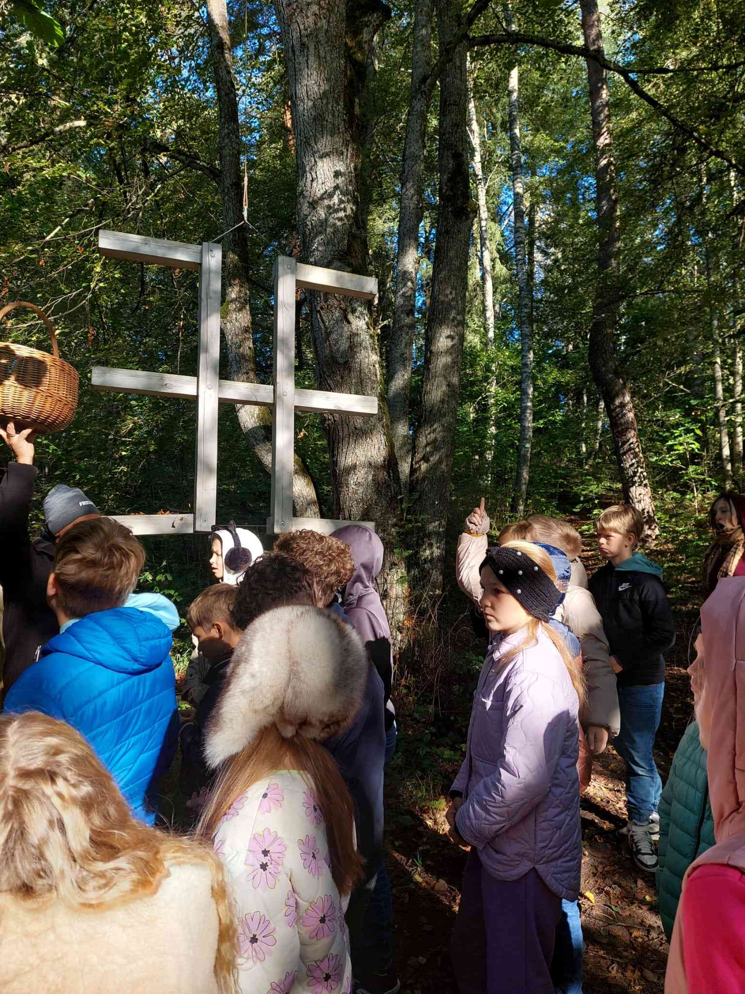 Pēc tam pastaigu takā abas klases iepazina latvju rakstu zīmes, kuras iezīmē katru gadskārtu. Taku ejot, skolēni izspēlēja sadarbības un veiklības spēles.