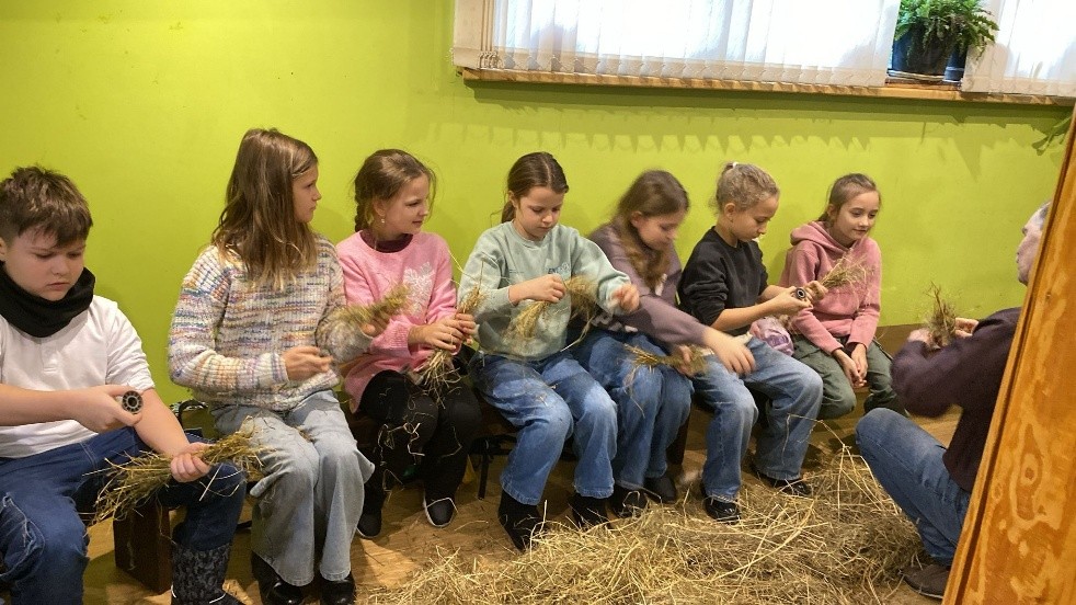 Ekskursijas laikā skolēni piedalījās radošajā darbnīcā, kur paši varēja izmēģināt roku salmu darbos. Skolēni izveidoja vienkāršu mazu gliemezīša figūriņu. Bērni atzina, ka darbs ar salmiem ir gan interesants, gan nomierinošs, un daudzi vēlējās pamēģināt to arī mājās.