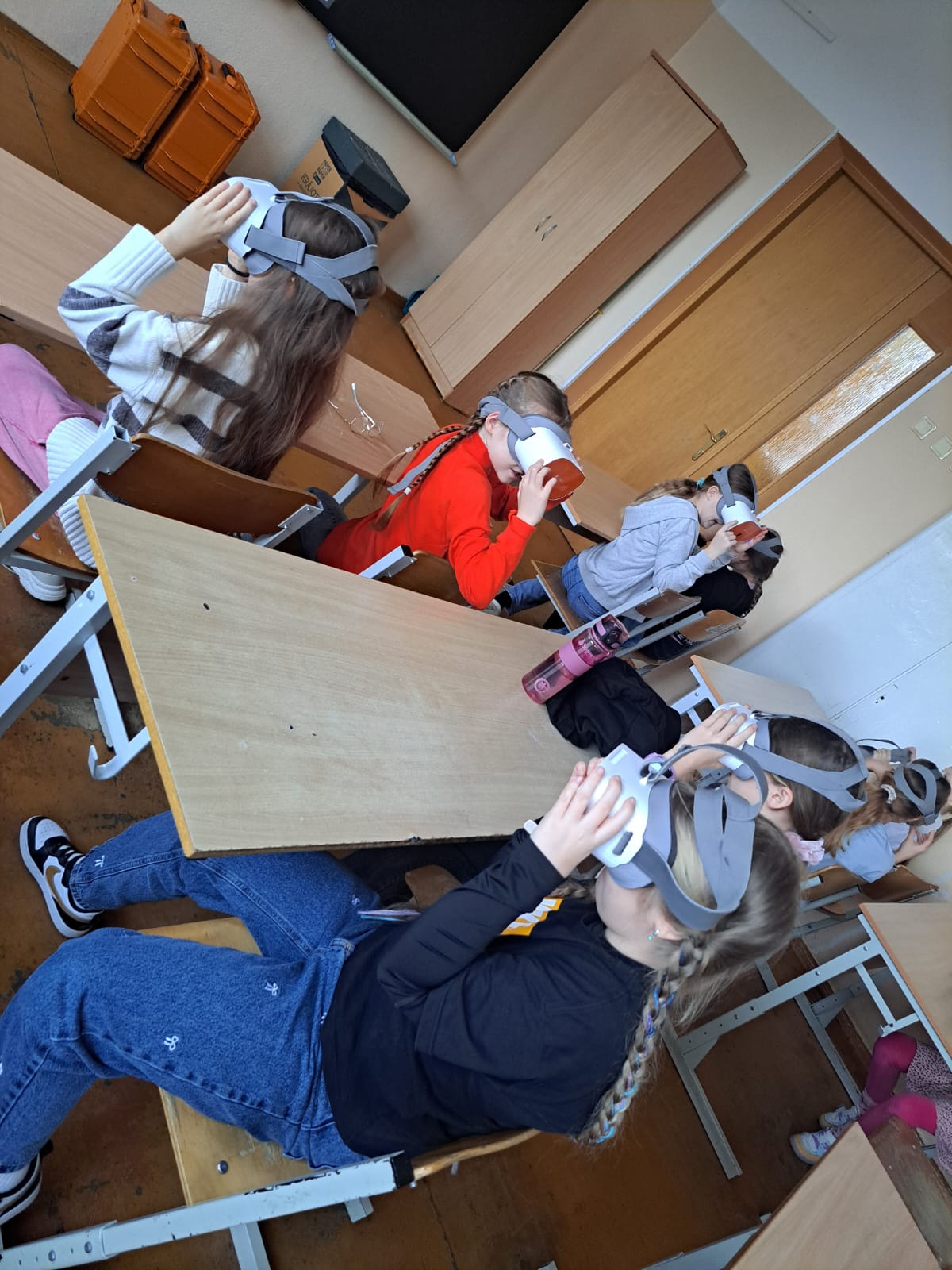 Otrajā nodarbību daļā skolēni izmantoja virtuālās realitātes brilles, lai iepazītu dažādas tēmas un pieredzes digitālajā vidē. Atbilstoši klašu grupām skolēni piedalījās dažādās izbraukuma nodarbībās: 1.-3. klašu skolēni devās izzinošā piedzīvojumā “Ceļojums kosmosā”, 4.–6. klašu skolēni piedalījās nodarbībā “Zaļais ceļš: no atkrituma līdz resursam”, savukārt 7.–9. klašu skolēni iepazina “Digitālo nākotni VR vidē: no pieredzes līdz profesijai”. Katra nodarbība bija pielāgota skolēnu vecumam un veicināja izpratni par dabaszinātnēm, tehnoloģijām, ilgtspēju un nākotnes profesijām.